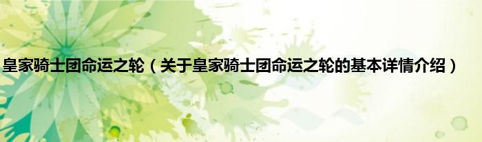 本文关于皇家骑士团命运之轮的基本详情介绍就讲解完毕,希望对大家有所帮助。