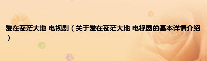本文关于爱在苍茫大地 电视剧的基本详情介绍就讲解完毕,希望对大家有所帮助。