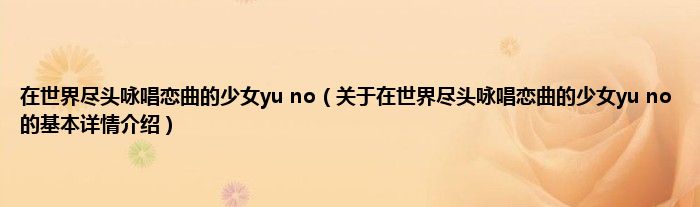 本文关于在世界尽头咏唱恋曲的少女yu no的基本详情介绍就讲解完毕,希望对大家有所帮助。