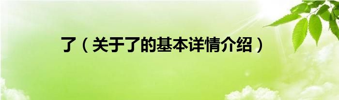 本文关于了的基本详情介绍就讲解完毕,希望对大家有所帮助。