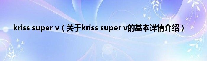 大家好我是小蝌蚪,kriss super v,关于kriss super v的基本详情介绍很多人还不知道,那么现在让我们一起来看看吧!
