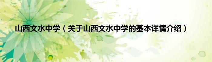 本文关于山西文水中学的基本详情介绍就讲解完毕,希望对大家有所帮助。