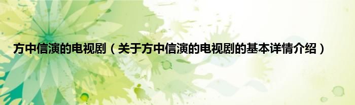 本文关于方中信演的电视剧的基本详情介绍就讲解完毕,希望对大家有所帮助。