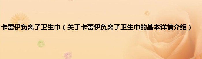 本文关于卡蕾伊负离子卫生巾的基本详情介绍就讲解完毕,希望对大家有所帮助。