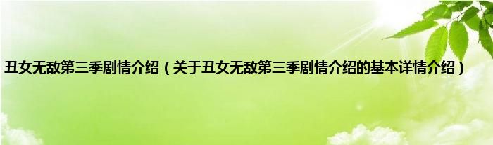 本文关于丑女无敌第三季剧情介绍的基本详情介绍就讲解完毕,希望对大家有所帮助。