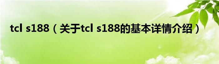 本文关于tcl s188的基本详情介绍就讲解完毕,希望对大家有所帮助。