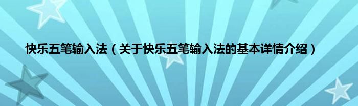 本文关于快乐五笔输入法的基本详情介绍就讲解完毕,希望对大家有所帮助。