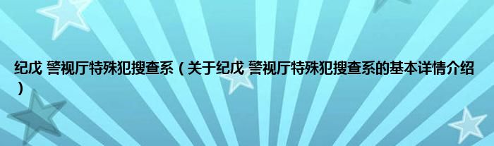 本文关于纪戊 警视厅特殊犯搜查系的基本详情介绍就讲解完毕,希望对大家有所帮助。