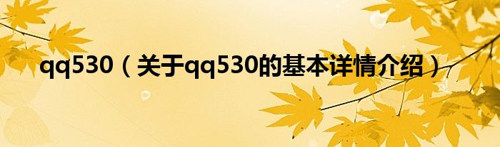本文关于qq530的基本详情介绍就讲解完毕,希望对大家有所帮助。