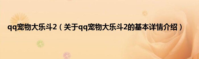 本文关于qq宠物大乐斗2的基本详情介绍就讲解完毕,希望对大家有所帮助。