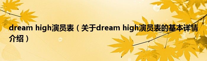 本文关于dream high演员表的基本详情介绍就讲解完毕,希望对大家有所帮助。
