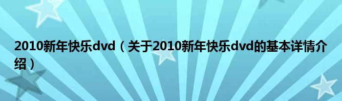 本文关于2010新年快乐dvd的基本详情介绍就讲解完毕,希望对大家有所帮助。