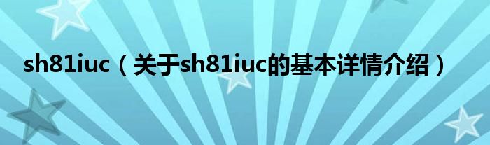 本文关于sh81iuc的基本详情介绍就讲解完毕,希望对大家有所帮助。