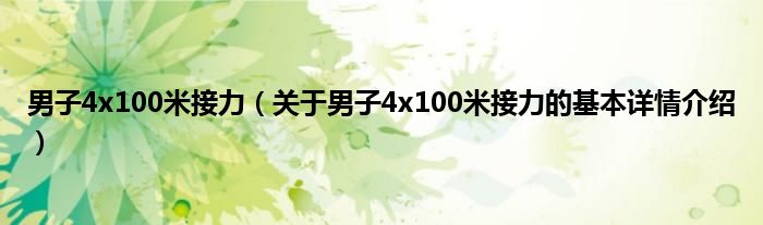 本文关于男子4x100米接力的基本详情介绍就讲解完毕,希望对大家有所帮助。