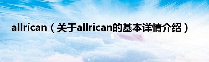 本文关于allrican的基本详情介绍就讲解完毕,希望对大家有所帮助。