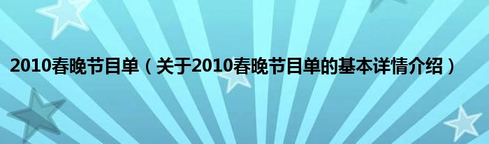 本文关于2010春晚节目单的基本详情介绍就讲解完毕,希望对大家有所帮助。