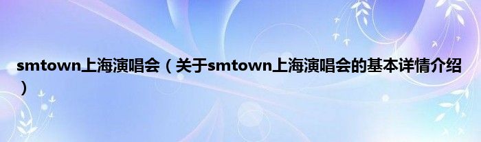 本文关于smtown上海演唱会的基本详情介绍就讲解完毕,希望对大家有所帮助。