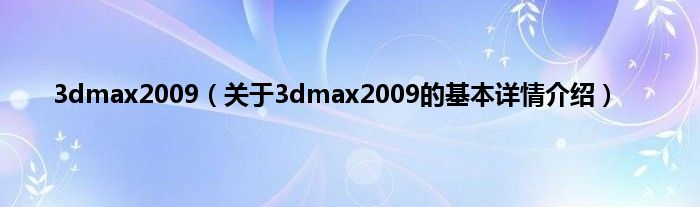 3dmax2009(关于3dmax2009的基本详情介绍)