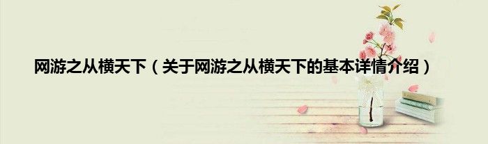 本文关于网游之从横天下的基本详情介绍就讲解完毕,希望对大家有所帮助。