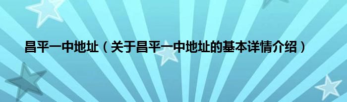 本文关于昌平一中地址的基本详情介绍就讲解完毕,希望对大家有所帮助。