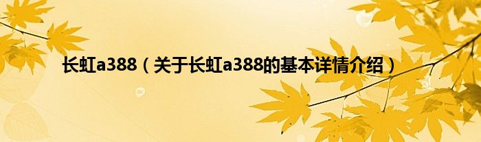 本文关于长虹a388的基本详情介绍就讲解完毕,希望对大家有所帮助。