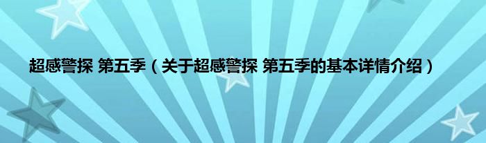 本文关于超感警探 第五季的基本详情介绍就讲解完毕,希望对大家有所帮助。