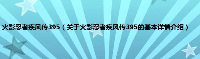 本文关于火影忍者疾风传395的基本详情介绍就讲解完毕,希望对大家有所帮助。