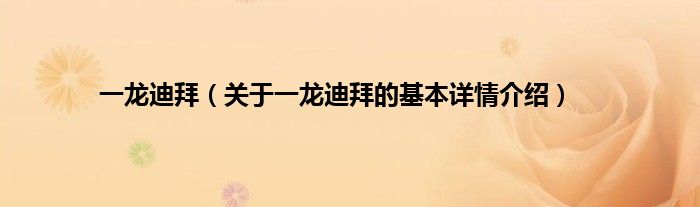 本文关于一龙迪拜的基本详情介绍就讲解完毕,希望对大家有所帮助。