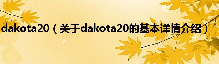 大家好我是小蝌蚪,dakota20,关于dakota20的基本详情介绍很多人还不知道,那么现在让我们一起来看看吧!