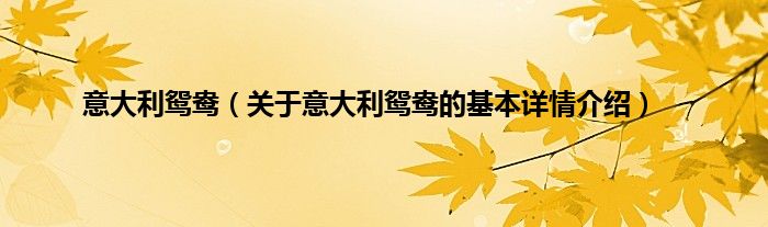 本文关于意大利鸳鸯的基本详情介绍就讲解完毕,希望对大家有所帮助。