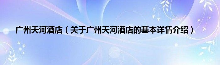 本文关于广州天河酒店的基本详情介绍就讲解完毕,希望对大家有所帮助。
