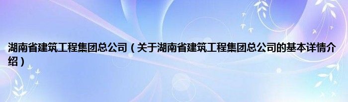 本文关于湖南省建筑工程集团总公司的基本详情介绍就讲解完毕,希望对大家有所帮助。
