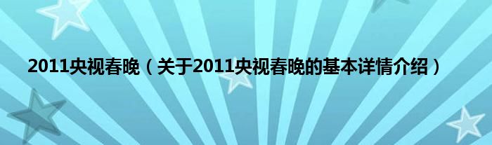 本文关于2011央视春晚的基本详情介绍就讲解完毕,希望对大家有所帮助。