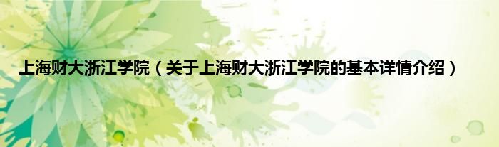 本文关于上海财大浙江学院的基本详情介绍就讲解完毕,希望对大家有所帮助。