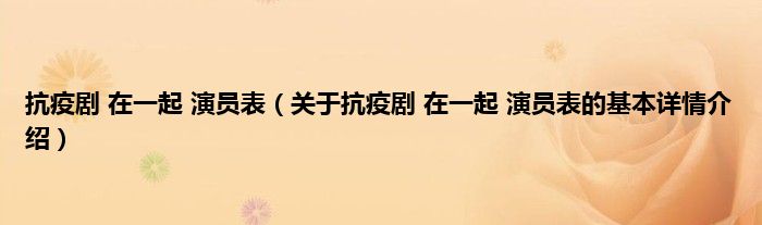 本文关于抗疫剧 在一起 演员表的基本详情介绍就讲解完毕,希望对大家有所帮助。