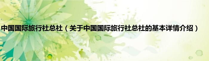 本文关于中国国际旅行社总社的基本详情介绍就讲解完毕,希望对大家有所帮助。