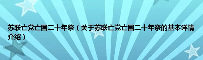 本文关于苏联亡党亡国二十年祭的基本详情介绍就讲解完毕,希望对大家有所帮助。