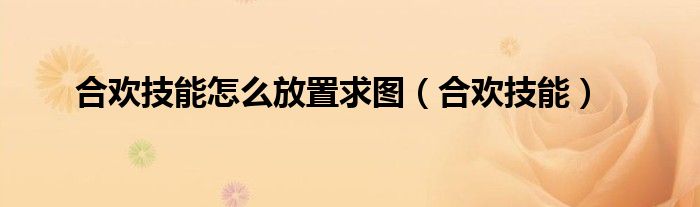 以上就是【合欢技能怎么放置求图,合欢技能】相关内容。