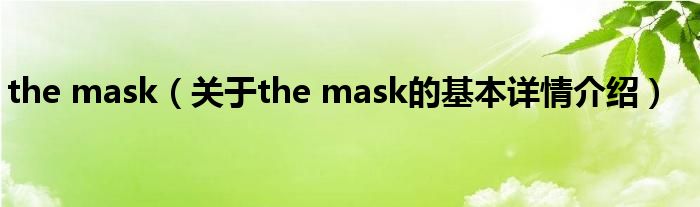 本文关于the mask的基本详情介绍就讲解完毕,希望对大家有所帮助。
