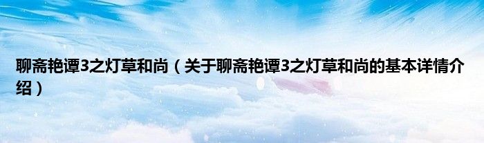 本文关于聊斋艳谭3之灯草和尚的基本详情介绍就讲解完毕,希望对大家有所帮助。