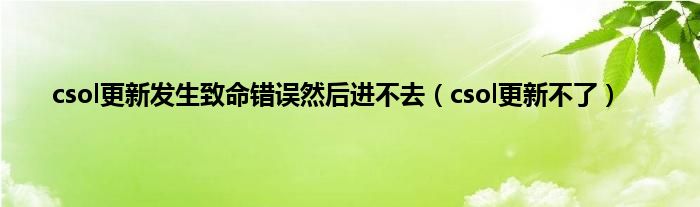 大家好,小问来为大家解答以上问题。csol更新发生致命错误然后进不去,csol更新不了这个很多人还不知道,现在让我们一起来看看吧!