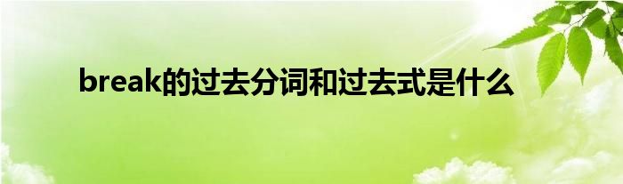大家好,小问来为大家解答以上问题。break的过去分词和过去式是什么这个很多人还不知道,现在让我们一起来看看吧!