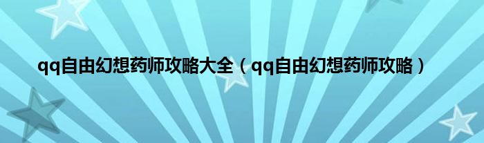 以上就是【qq自由幻想药师攻略大全,qq自由幻想药师攻略】相关内容。
