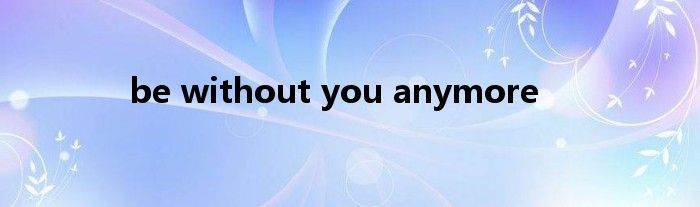 大家好,小问来为大家解答以上问题。be without you anymore这个很多人还不知道,现在让我们一起来看看吧!
