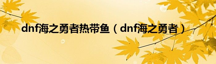 大家好,小问来为大家解答以上问题。dnf海之勇者热带鱼,dnf海之勇者这个很多人还不知道,现在让我们一起来看看吧!