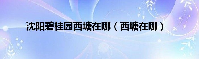 以上就是【沈阳碧桂园西塘在哪,西塘在哪】相关内容。
