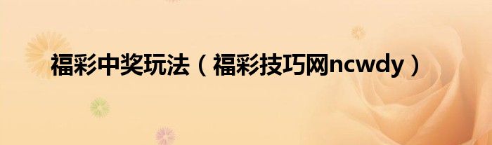 大家好,小问来为大家解答以上问题。福彩中奖玩法,福彩技巧网ncwdy这个很多人还不知道,现在让我们一起来看看吧!