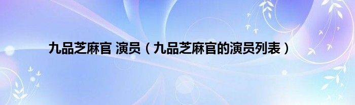 以上就是【九品芝麻官 演员,九品芝麻官的演员列表】相关内容。