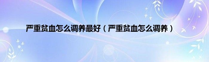 以上就是【严重贫血怎么调养最好,严重贫血怎么调养】相关内容。