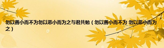 以上就是【勿以善小而不为勿以恶小而为之与君共勉,勿以善小而不为 勿以恶小而为之】相关内容。